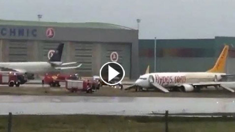 شاهدوا.. انزلاق طائرة ركاب تركية في مطار بإسطنبول