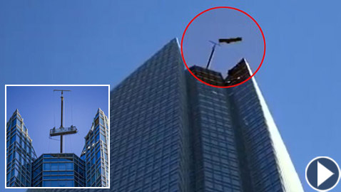 عاملان يواجهان الموت بسبب تأرجح منصتهما أعلى برج شاهق! ..